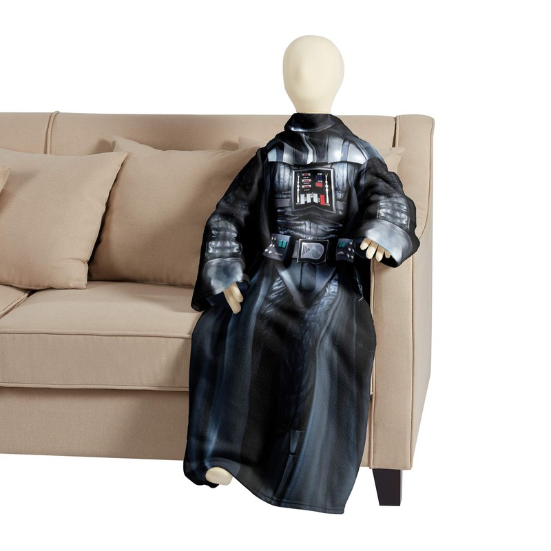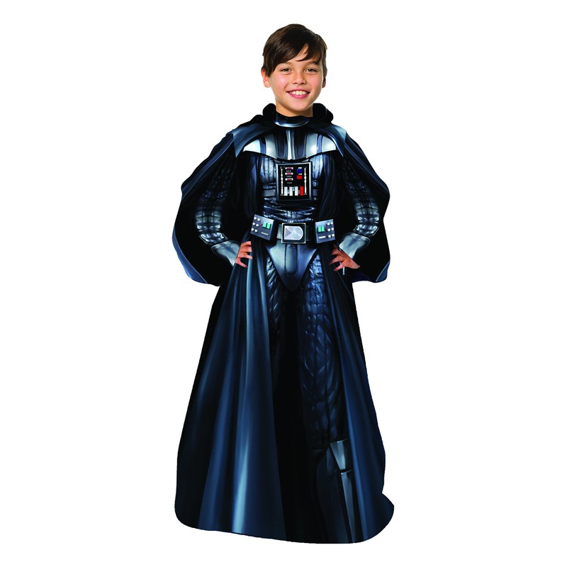 Suit up as Darth Vader in this Star Wars youth comfy throw by the Northwest company! decorated with your favorite sci-fi character, this Blanket with sleeves is not only colorful and vibrant; but also soft and warm! made of soft, luxurious fleece with oversized loose fitting sleeves, the comfy throw lets your upper body remain protected from the cold while leaving arms and hands free to use a laptop, TV remote, read a book, Eat a snack, enjoy an outdoor sports event and much more! measures 48"x 48". machine washable.