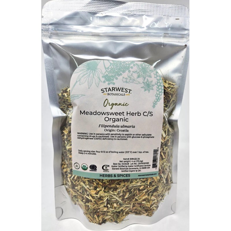 Starwest Botanicals Organic Meadowsweet Herb Cut and Sifted, 4 Ounces