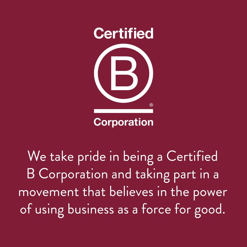 - Proud to be a B Corp: B Corp certified companies are part of a global community redefining success by balancing profit with purpose. As a B Corp, we meet the highest standards of social and environmental impact, corporate governance, and transparency.