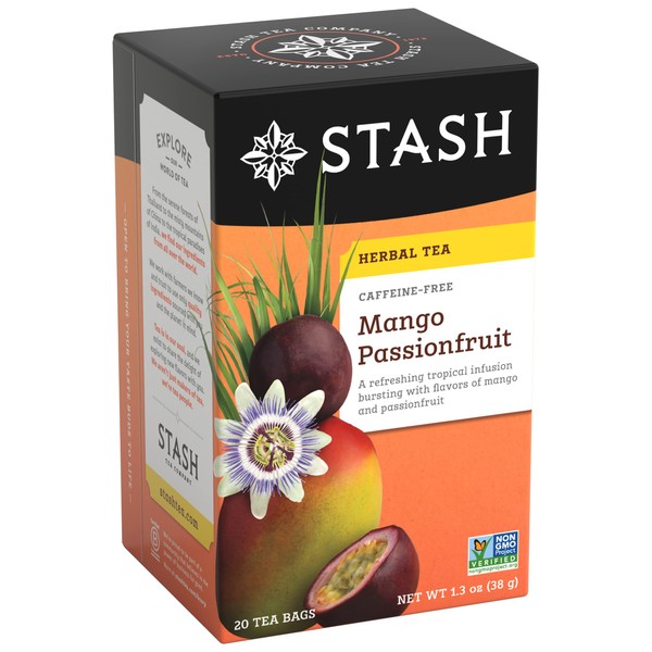 Stash Tea Mango Passionfruit Herbal Tea - Naturally Caffeine Free, Non-GMO Project Verified Premium Tea with No Artificial Ingredients, 20 Count (Pack of 6) - 120 Bags Total