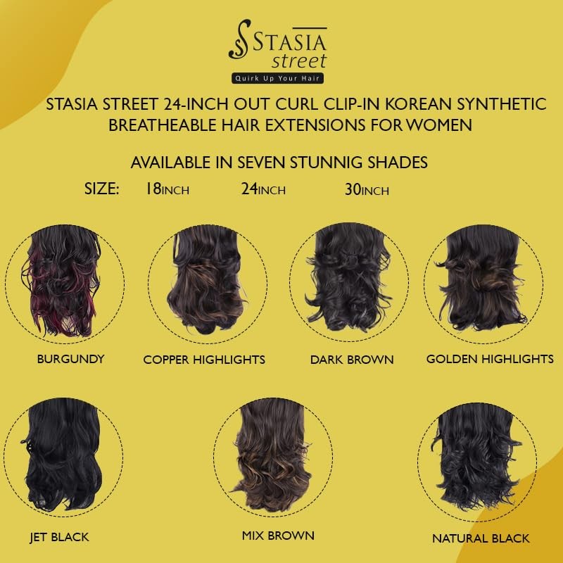 Stasia Street 24-Inch Out Curl Clip-In Korean Synthetic Breatheable Hair Extensions for Women Natural Look Instant Volume & Length – Natural Black