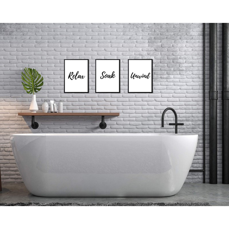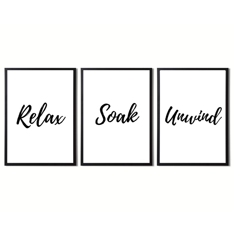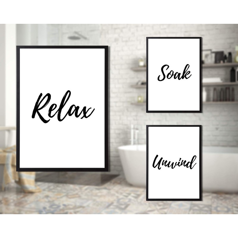 State Media Vision Relax Soak Unwind Modern Bathroom Wall Art - Set Of 3 Minimal Bathroom Decor - Print Only (Set 1, A4)