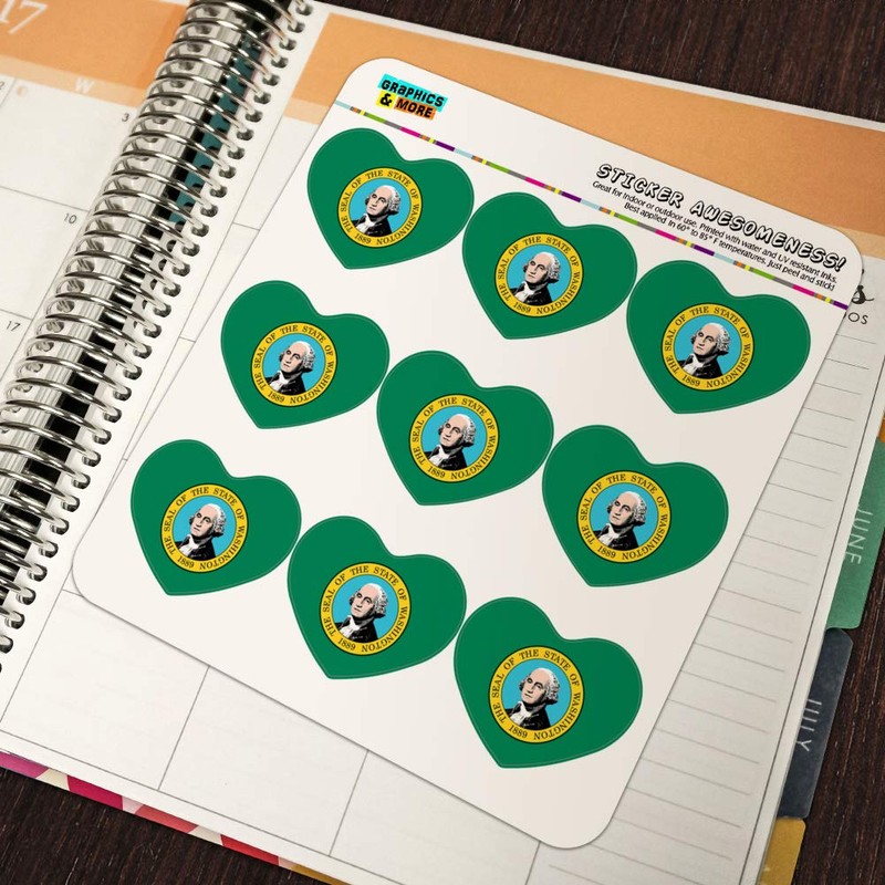 State of Washington Flag Heart Shaped Planner Calendar Scrapbook Craft Stickers