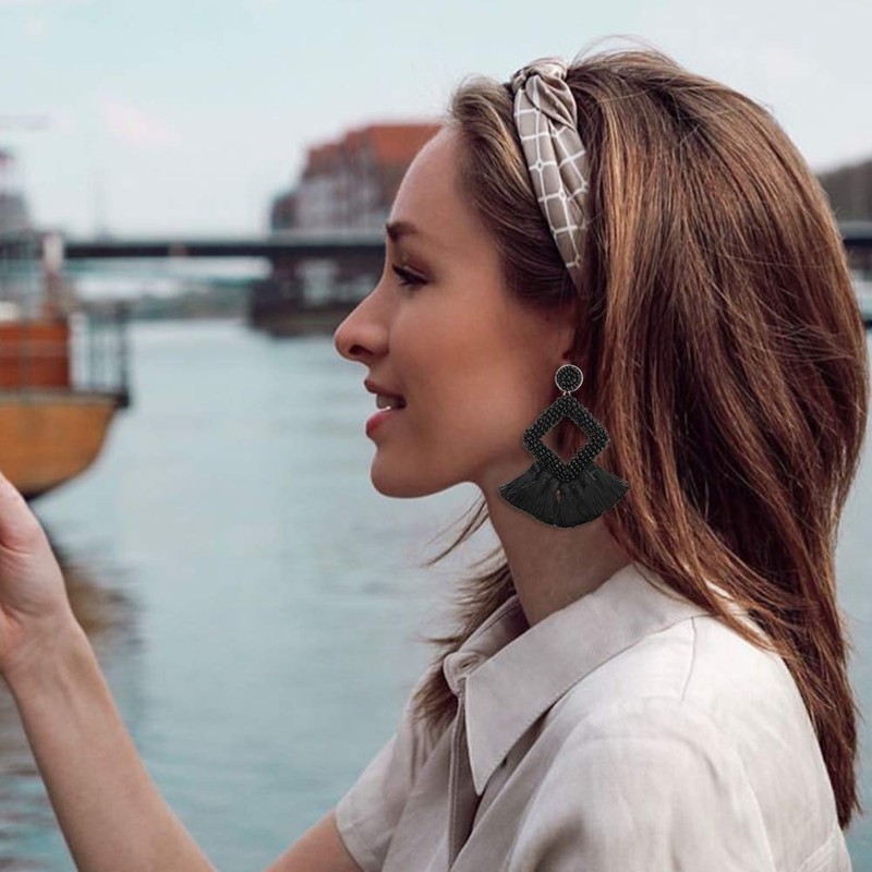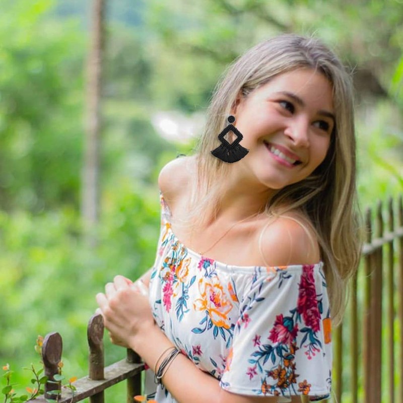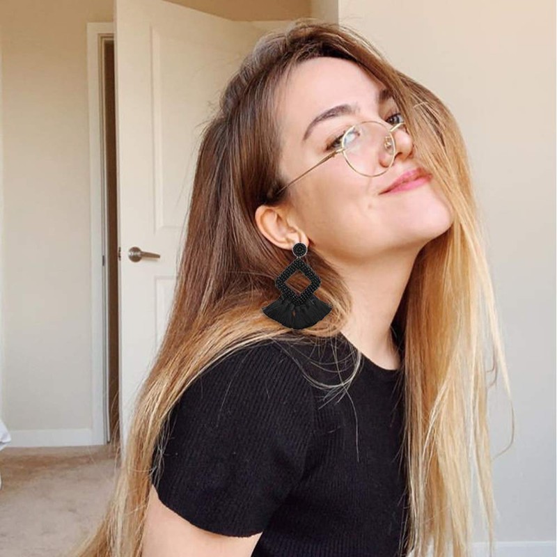 Statement Tassel Drop Earrings - Bohemian Beaded Square Fringe Dangle Earrings Gift for Women