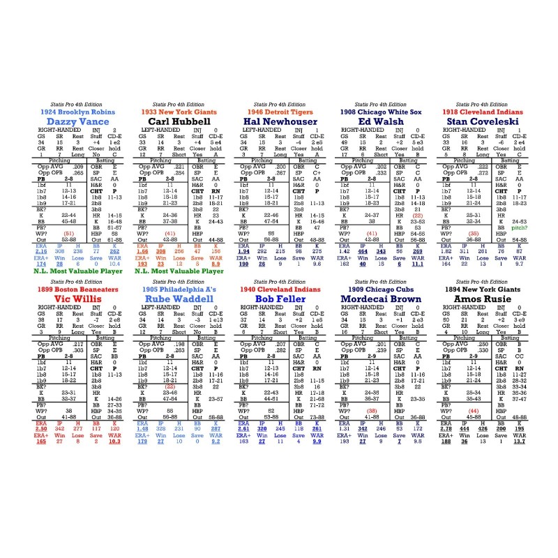 Statis Pro BaseballOld Time All Stars, – New 4th Edition
