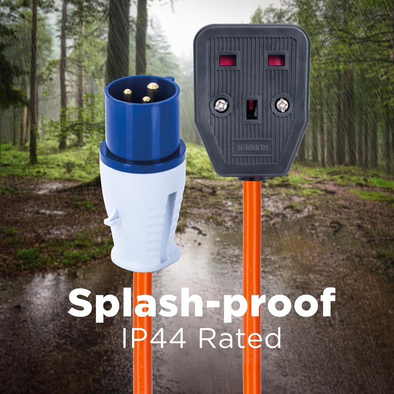 • IDEAL FOR CAMPING, CARAVANS & MOTORHOMES: Designed for outdoor enthusiasts, this 20cm adapter cable is perfect for connecting your 16A site plug to a UK socket in your motorhome or caravan. Its compact and sturdy design makes it easy to use, while the IP44 rating ensures it can handle rain, dust, and other outdoor elements, keeping you connected wherever you go.