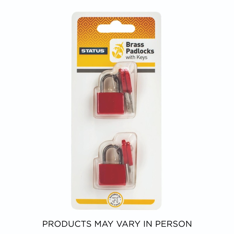 - Travel Padlock - with Key - Brass with Plastic Coating - Red - Status - 2 pk - in a Clam Shell
