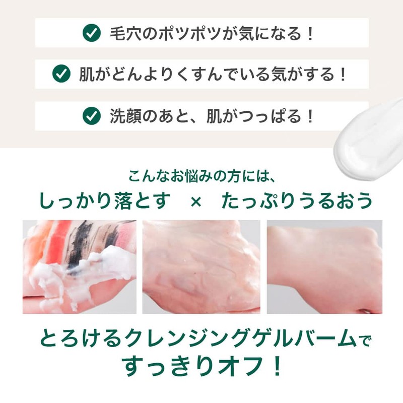 • Formulated with CICA for skin roughness care. Melting Cleansing Gel Balm: Gel balm that melts into your hand. 6-in-1 cleansing eliminates the need for a double face wash. The gel is fresh, so it does not remove excess oil