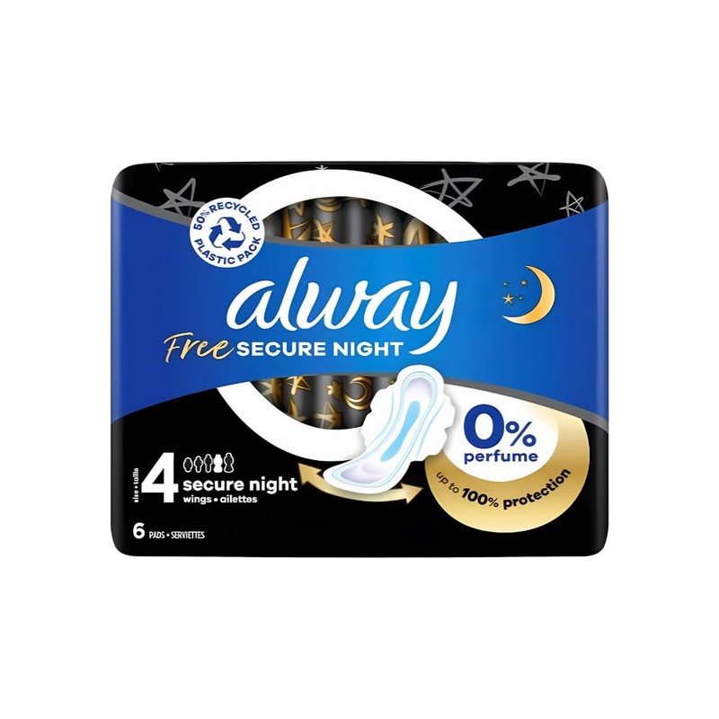 Stay Protected All Night: Secure Night Sanitary Towels Bundle - Up to 100% Protection - Size 4 (2 Packs x 6 Pads Each) - Alway