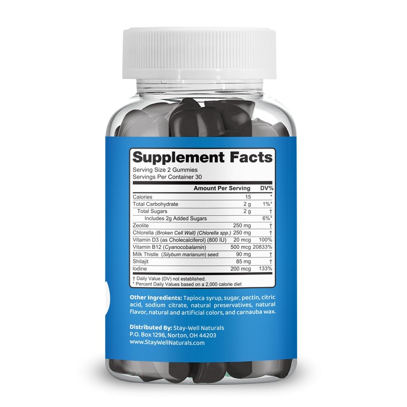 Total Detox, Heavy Metal Detox for Adults- Zeolite, Chlorella, Milk Thistle, Shilajit & Iodine, Toxin Cleanse, Pineal Decalcification, Fluoride Cleanse, Heavy Metal Cleanse, 60 Mixed Berry Gummies