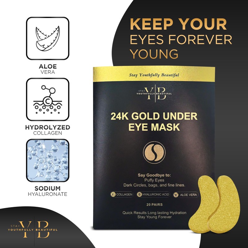 Stay Youthfully Beautiful 24K Gold Under Eye Mask (20 Pairs)