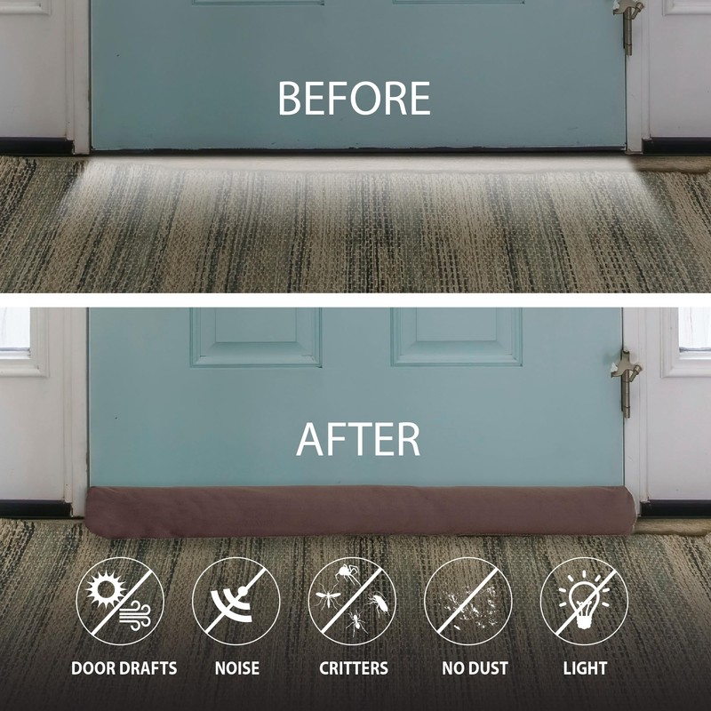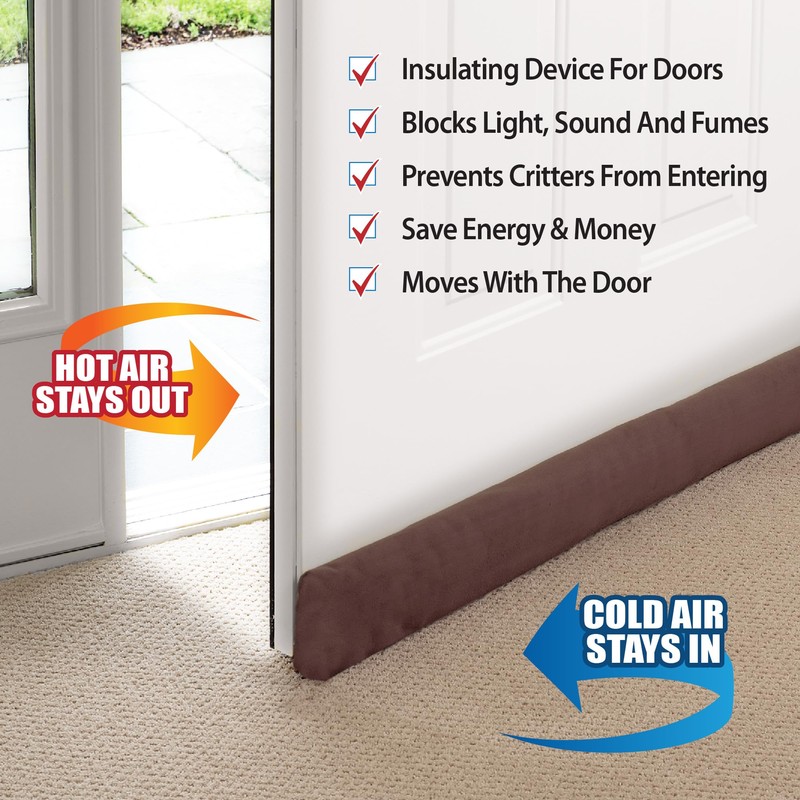 • WORKS ON DOORS & FLOOR SURFACES: Use our insulated draft stopper commercially or residentially to fill the gap beneath the door in your entryway, living room, basement, or garage. It’ll protect your interior from harsh cold and heat, help reduce outside noise, and even help prevent dirt, dust, fumes, and critters from entering.