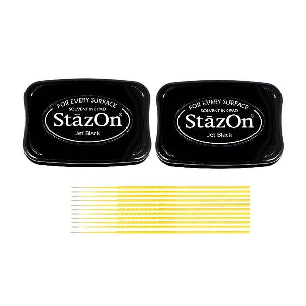 StazOn Multi-Surface Solvent Ink Pad Bundle - 2 Pack StazOn Jet Black Solvent Ink Pads - with Trebbies Fine Detail Sticks