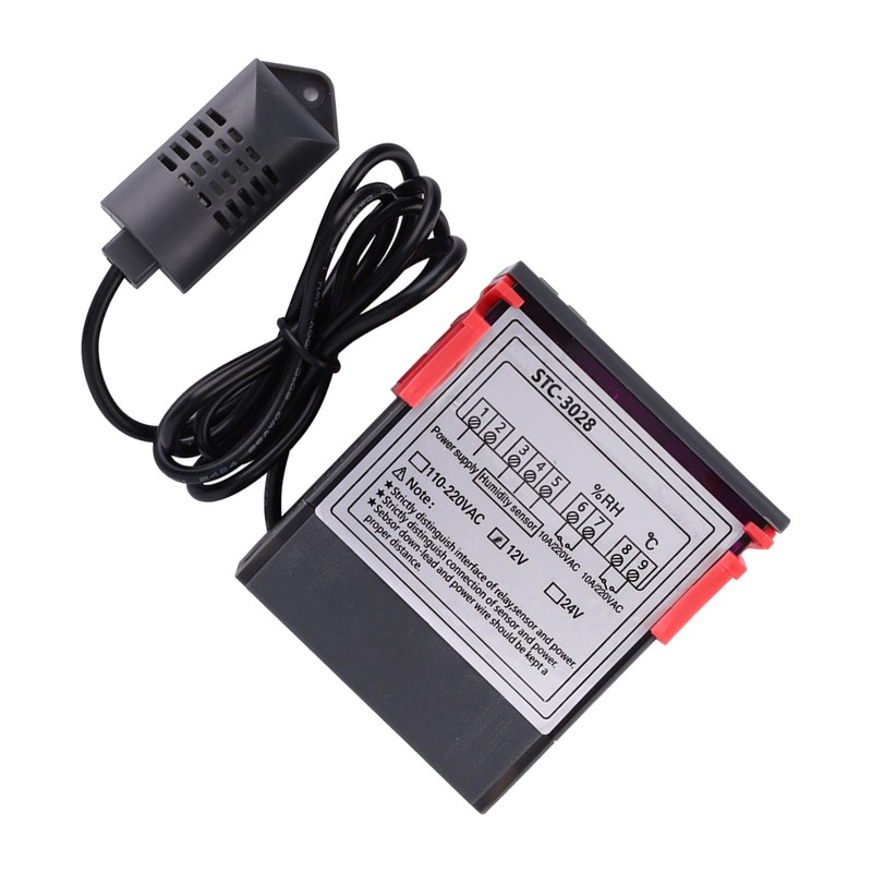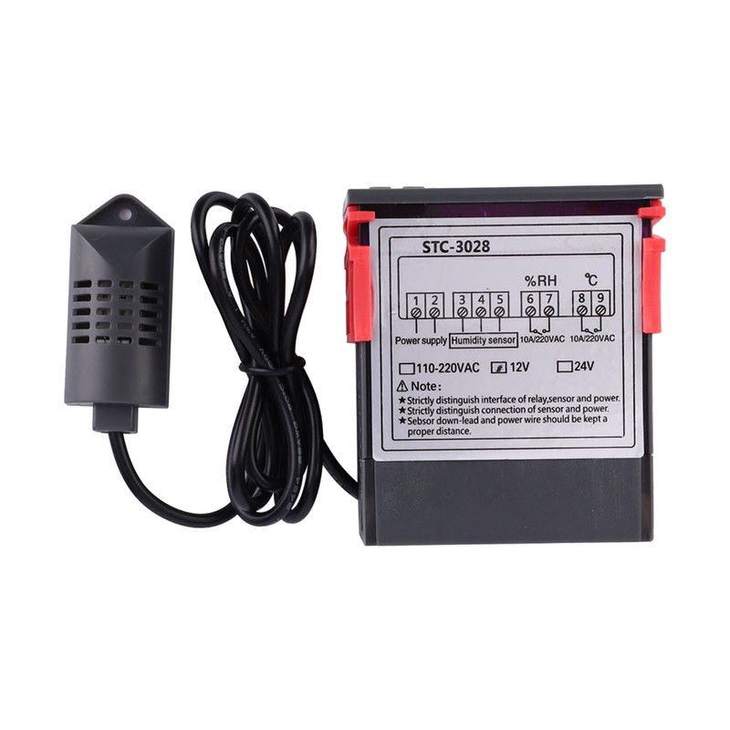 STC-3028 Digital Display Temperature and Humidity Controller Meter with Integrated Sensor (12V)