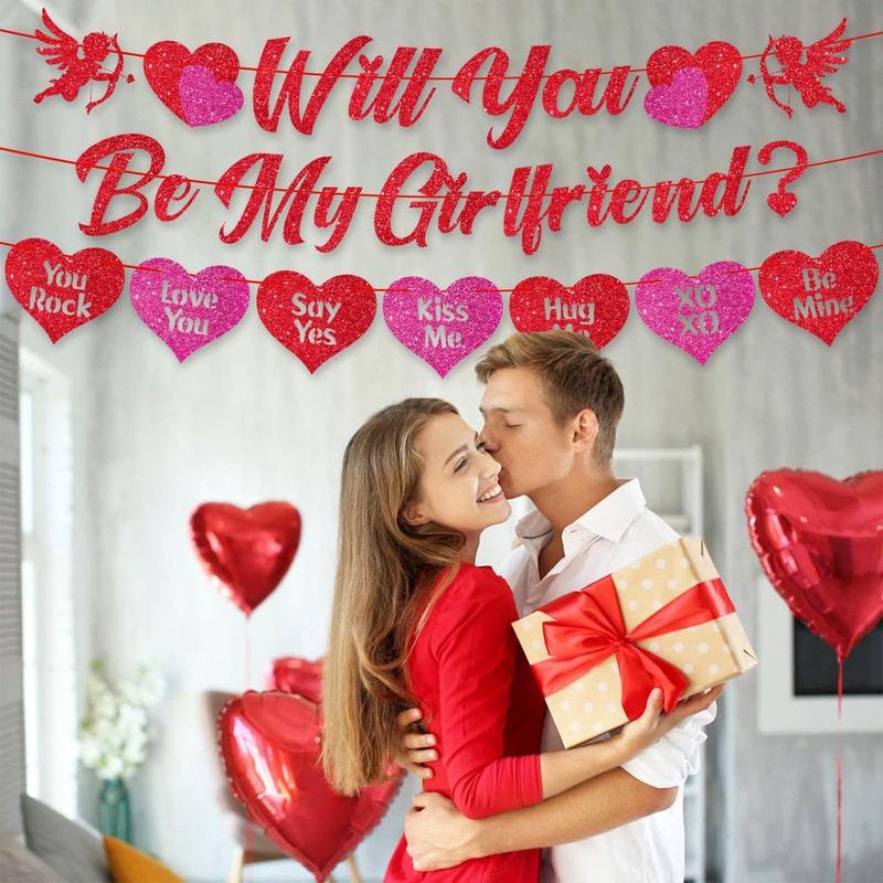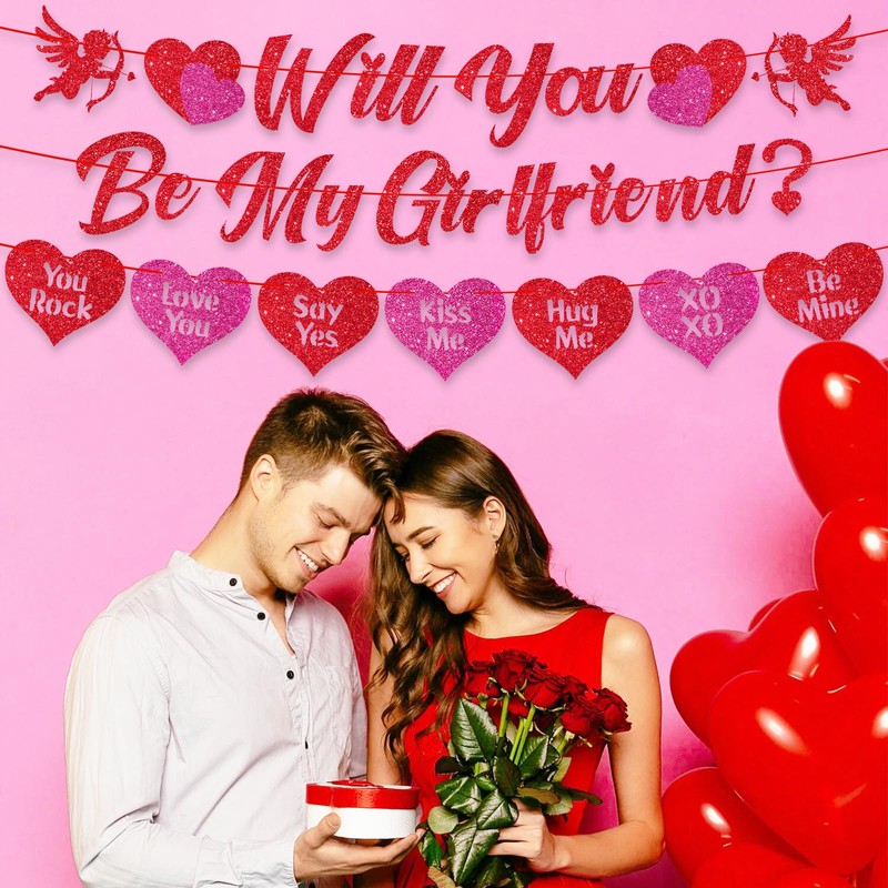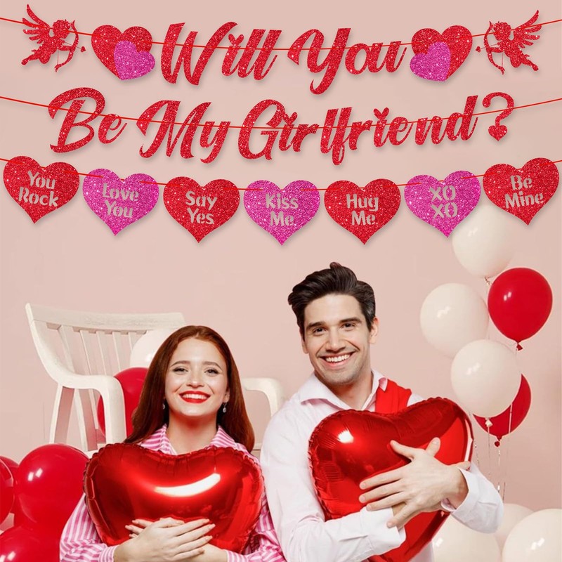 - Romantic and Elegant Design: This Will You Be My Girlfriend banner features charming Cupid elements in vibrant pink and red glitter paper; Perfect for creating a romantic atmosphere for proposals, Valentine’s Day, or special occasions