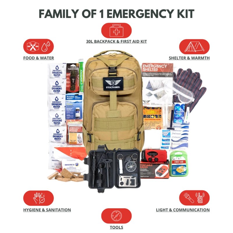 Stealth Angel 1 Person Tan 72 Hour Emergency Kit - Survival Bag for Earthquakes, Hurricanes, and Other Natural Disasters