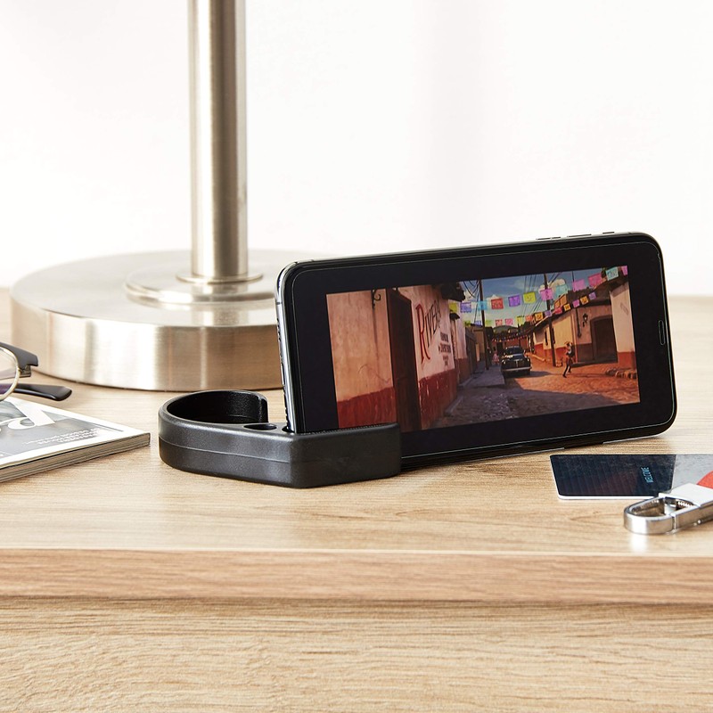 - Useful multi-tool with bottle opener, smartphone stand, thread/tag cutter, ruler and more