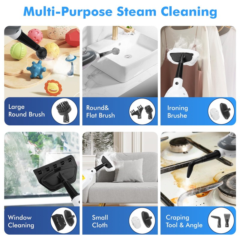 Steam Mop - All-in-one Powerful Handheld Steam Cleaner Detachable Floor Steamer with 11 Accessories, MultiPurpose Steamer for Hardwood Floors, Clothes,Windows,Tiles,Furniture,Carpet, Whole Home Use