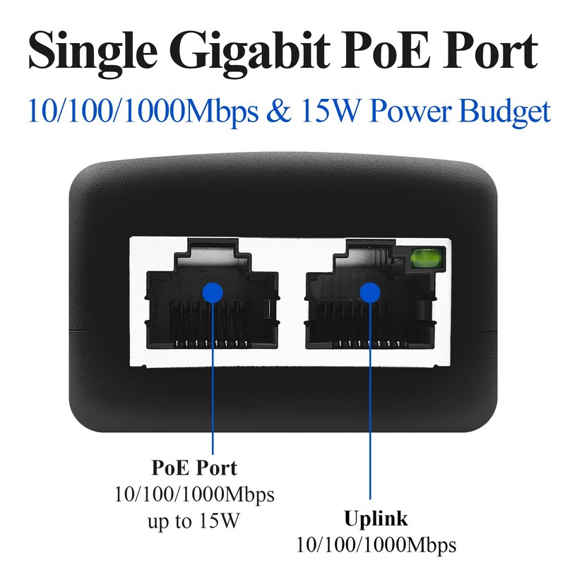 - Full Gigabit PoE Adapter: STEAMEMO PoE power supply is equipped with 1 Gigabit Ethernet input port and 1 PoE Gigabit Ethernet output port at 10/100/1000Mbps each.