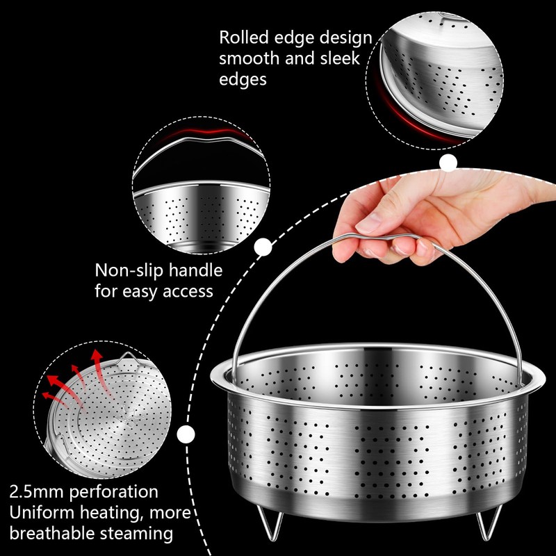 - [Food-grade 304 stainless steel] The steam insert for pressure cookers is made of food-safe 304 stainless steel. Non-toxic and odorless for healthy use. Dishwasher safe, easy to clean and odourless.