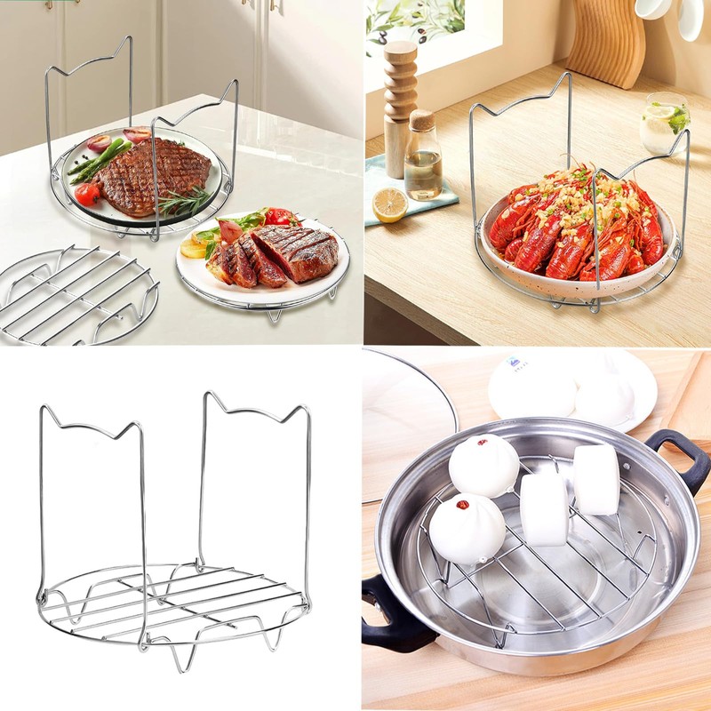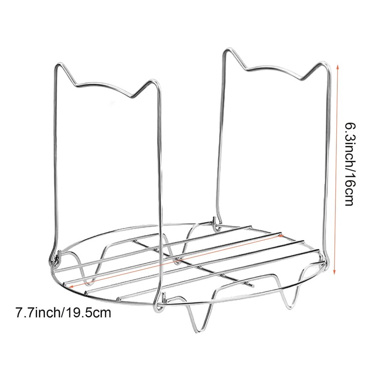 - multiple functions:Great for Lifting out Whatever Delicious Meats & Veggies You Cook, roast, cheesecakes, desserts, eggs, veggies, meat and much more. Not only can it be used as a steamer rack, can also serve as a metal trivet, egg rack, wire rack, pressure cooker rack, trivet for pressure cooker or other pots, pressure cooker accessories, pan lifter, a cooling rack, pot stand rack, food holder etc