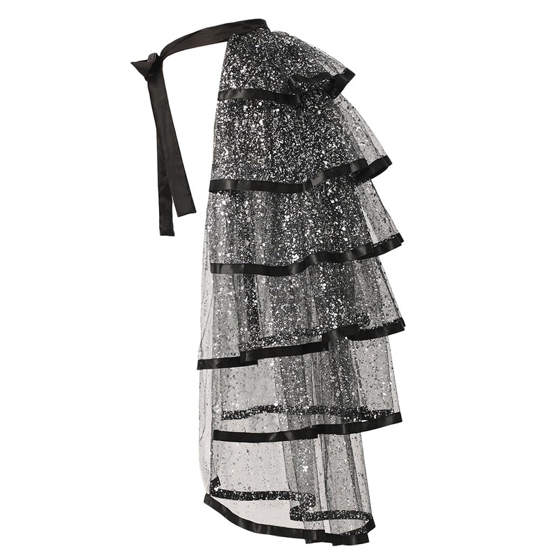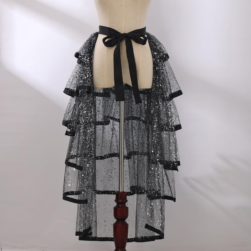 Steampunk Sparkle Sequin Tulle Tutu Bustle Skirts 6 Layer Overskirt Tie-on Belt, A-black With Silver-foil, One Size