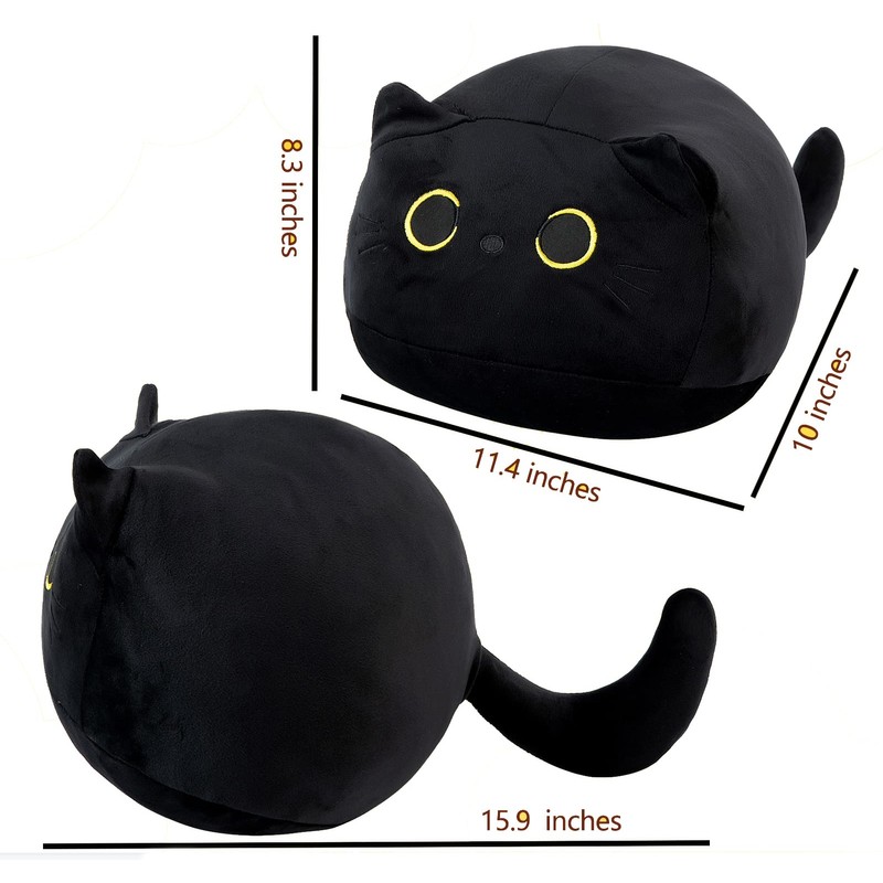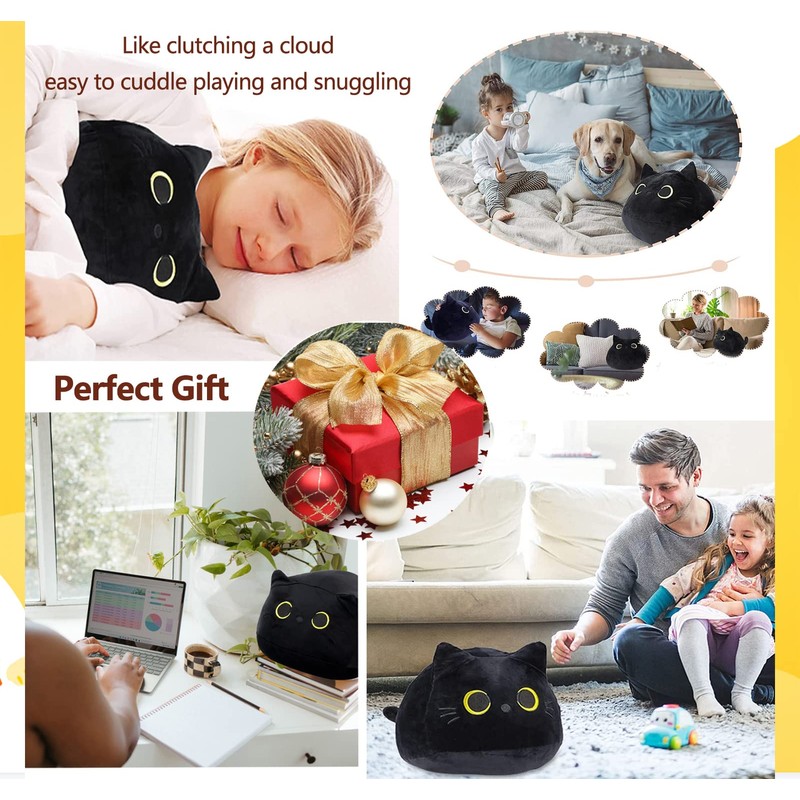 - Bring you good luck black cat pillow toy for kids, you baby will be eager to play with it. Softness encourages a child to cuddle this kitty.And no one doesn't like cute soft and fluffy plush dolls.So the cat plush pillow is a perfect gift for children, friends and family
