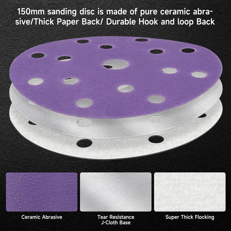 • 【Premium Ceramic Quality Materials】 150mm sanding disc is made of pure ceramic abrasive, Each disc is meticulously designed to withstand rigorous use, ensuring longevity and consistent performance. It cuts 30% faster and 30% longer life than other aluminum oxide abrasive, good choice for material removal and surface finishing.