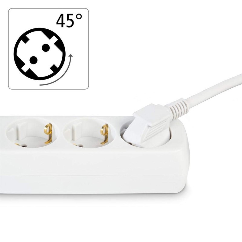 - Functionality: the 3-socket is rotated 45°, also ideal for angled plugs and earthing contact plugs without covering a slot