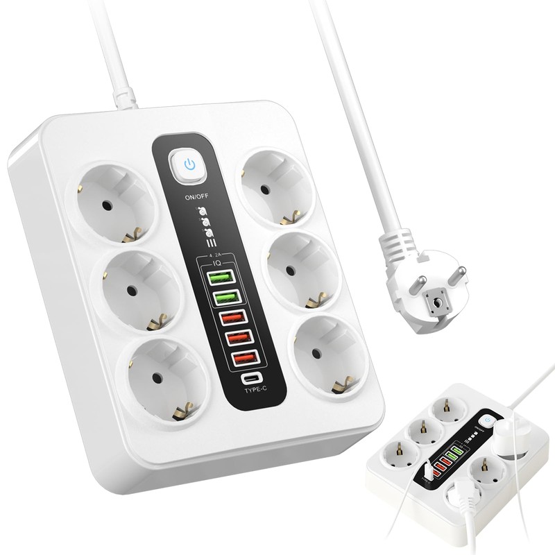 6 Eurosteckdosen + 5 USB-Anschlüsse + 1 Typ-C-Anschluss