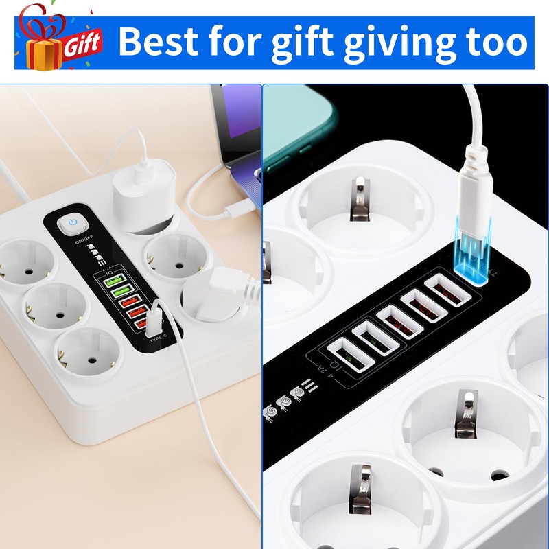 - 🔌【12-in-1 Mehrfachsteckdose】Ausgestattet mit 6 AC-Steckdosen, 5 USB-Anschlüssen und 1 USB C-Port. Eine Steckdosenleiste mit Überspannungsschutz (1080 Joule) schützt angeschlossene Geräte. Mit dem Mehrfachstecker Steckdosenturm-Schalter können Sie alle Steckplätze per Knopfdruck ein-/ausschalten. Die multifunktionale Steckdosenleiste hat ein 2m Verlängerungskabel und lädt gleichzeitig 12 Geräte, ideal für Zuhause, Wohnzimmer, Schreibtisch, Studentenwohnheim, Büro und Reisen