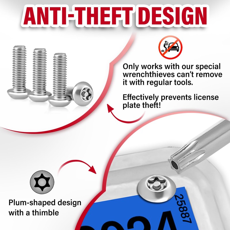 - Unique Plum Shaped Anti Theft Design: Its one - of - a - kind plum - shaped design, with a built - in thimble mechanism, makes it nearly impossible for thieves to remove the license plate without specialized tools. This design provides a high level of security for your license plate, allowing you to drive with peace of mind, free from concerns about license plate theft.