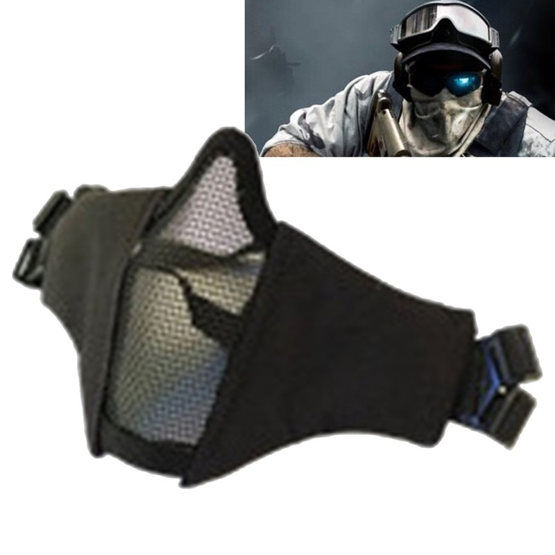 Steel Mesh Protective Face Shield Half Face Oxford Cloth Breathable for CS Game Outdoor Black