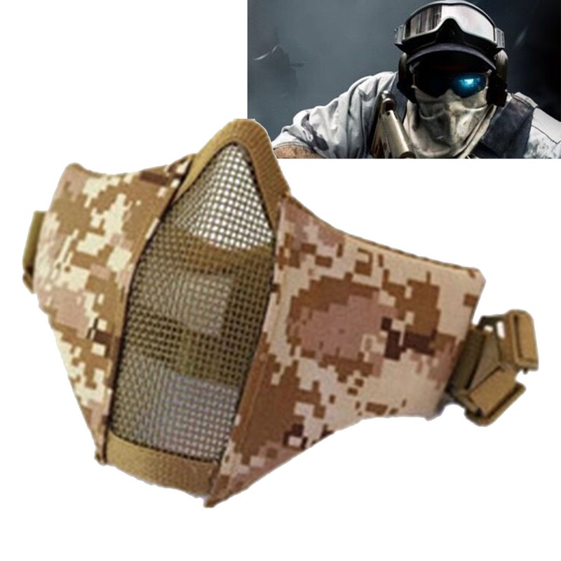 Steel Mesh Protective Face Shield Half Face Oxford Cloth Breathable for CS Game Outdoor Sand