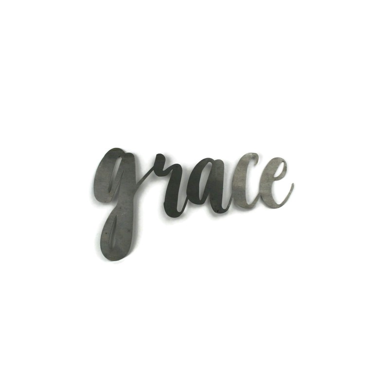 Steel Metal Script Word Art - Various Sizes and Finishes (grace Small 10.25x6", Raw, Unfinished Steel)