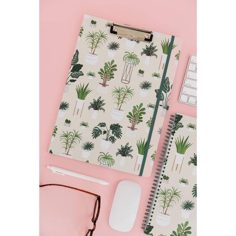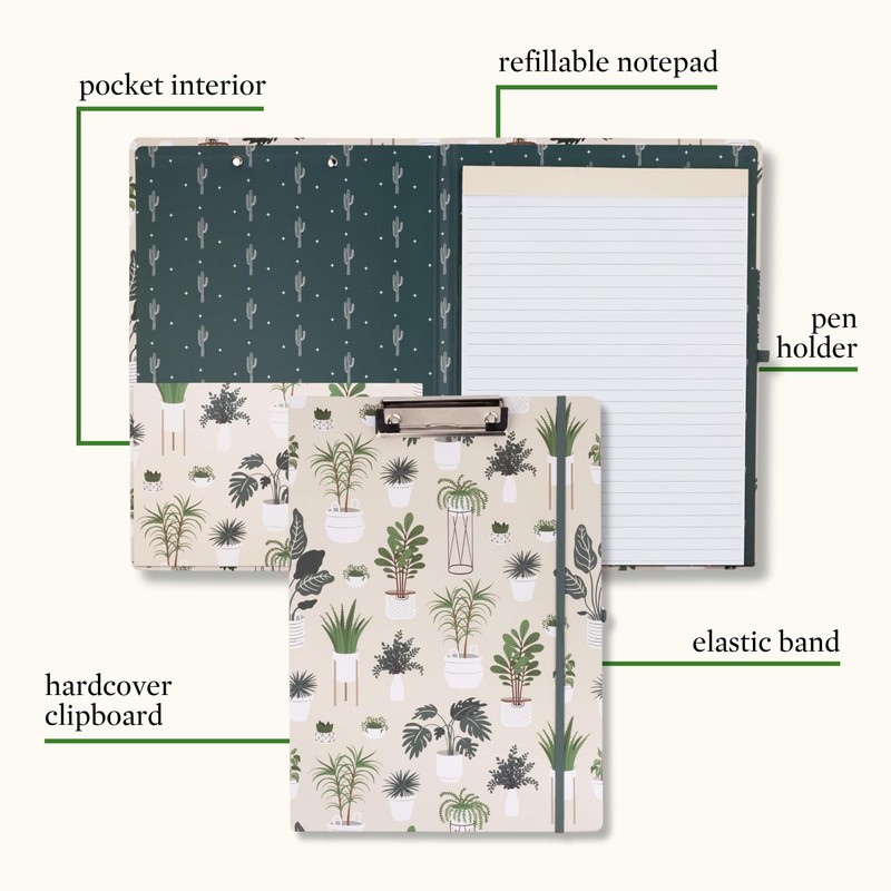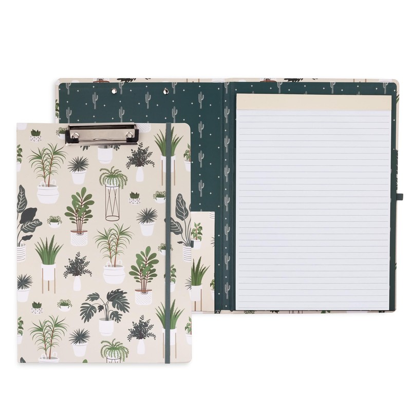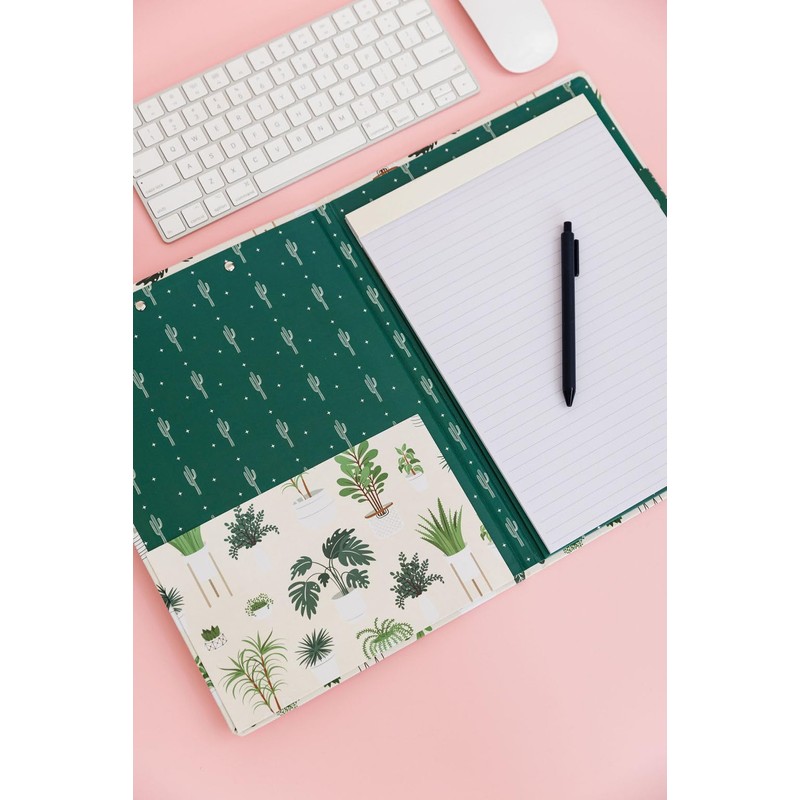 Steel Mill & Co Cute Clipboard Folio with Refillable Lined Notepad and Interior Storage Pocket, Padfolio for Work (Sage Plants)