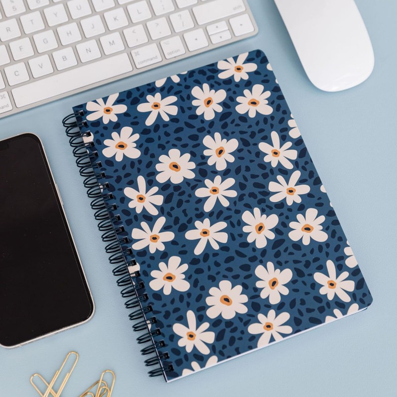 - Stylish Design: Adorned with a charming leopard daisy pattern, this blue, floral-themed hardcover spiral notebook adds a touch of elegance to your journaling or note-taking