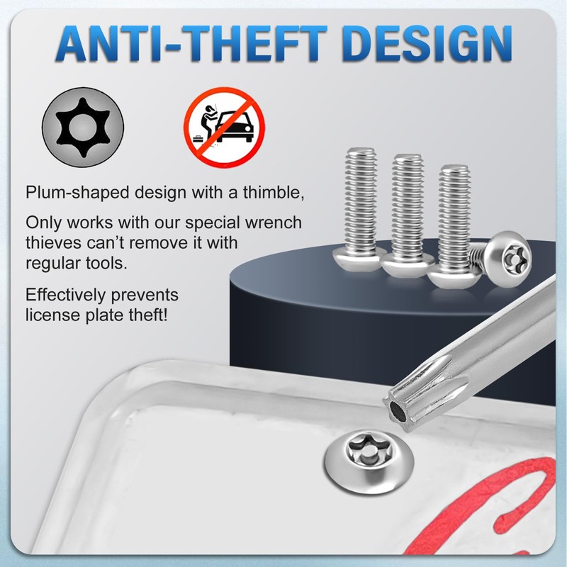 ✔ Thief-Proof Security – Unique plum-shaped screws require special tools, stopping license plate theft.