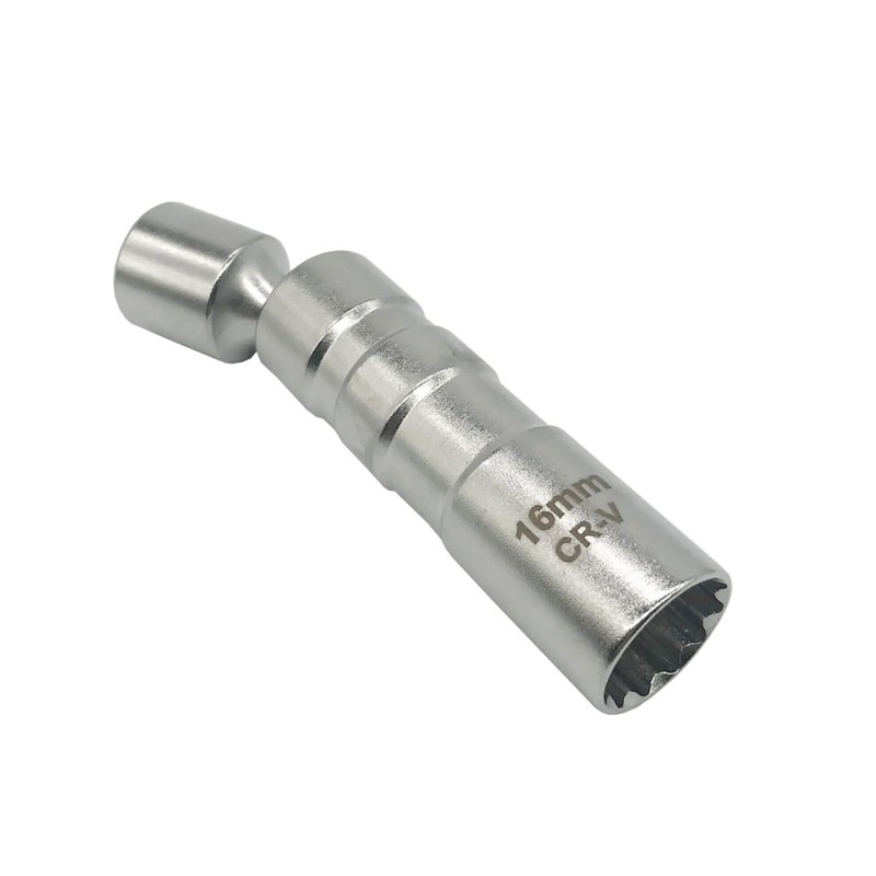 This magnetic swivel spark plug socket is made of hardened and heat-treated chrome vanadium alloy steel and a chrome plated mirror finish maximizes wear life and resists rust and corrosion