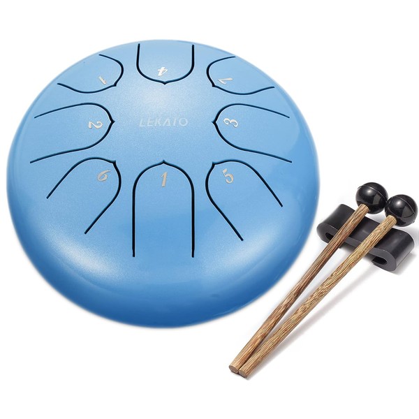 Steel Tongue Drum, LEKATO 6 Inch 8 Notes Tongue Drum Percussion Instruments - C Key Rain Drum with Music Book, Drum Mallets(Sky Blue)