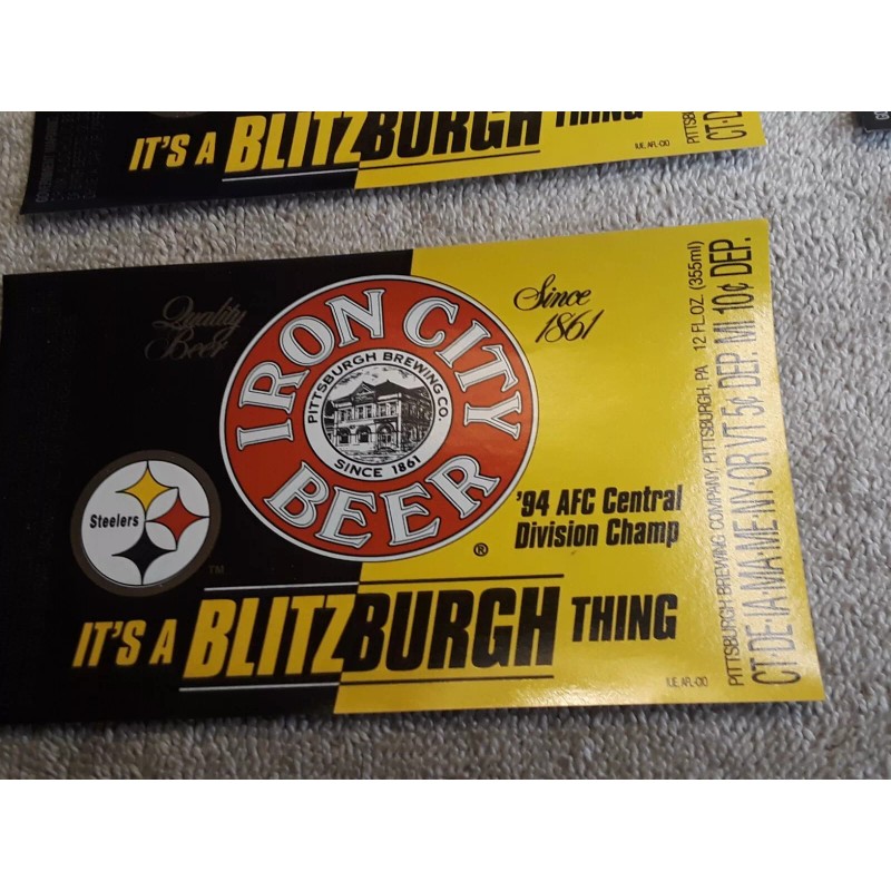 Steelers IRON CITY BEER Blitzburgh Thing 94 AFC Division Champ Label lot of 6
