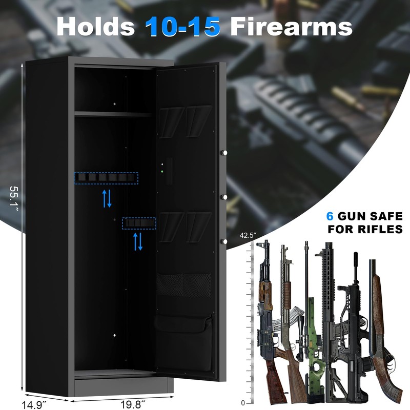 - 【Spacious Storage for 10–15 Guns】🧰Designed to hold 10 to 15 rifles or shotguns securely. Ideal for gun collectors or anyone needing dependable firearm storage.