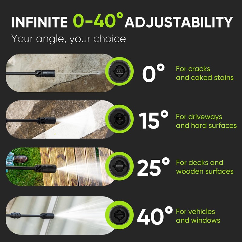 - Custom Cleaning Made Simple – Switch between three spray modes to match the task at hand. Whether you're blasting away grime or gently rinsing delicate surfaces, you’ve got the perfect pressure at your fingertips