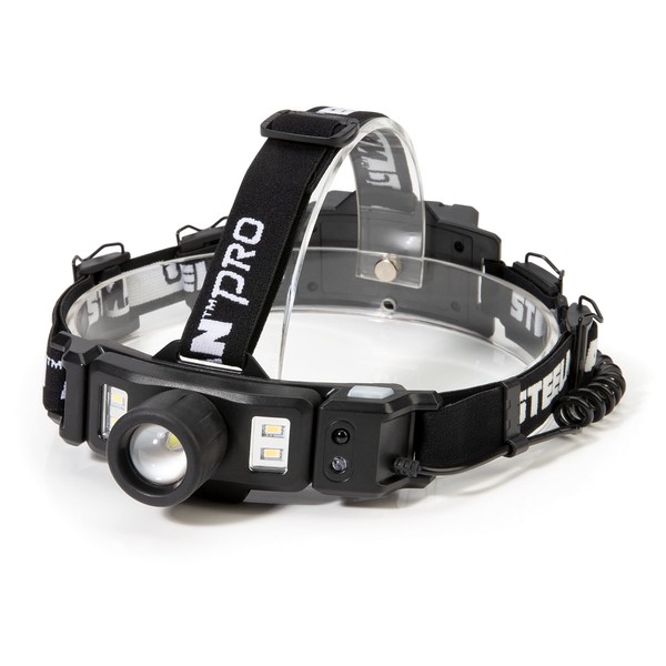 Don't be left in the dark when your flashlight burns out yet another bulb. The STEELMAN PRO 79379 Multi-Mode Focusing Rechargeable Headlamp with Rear Safety Light uses LED lights to provide the bright, long-lasting illumination of a handheld flashlight with hands-free convenience and bulbs that will never burn out. The focusable spotlight has an overmolded rubber bezel and can produce up to 200 lumens of light. As a focused beam of light it can reach out to a distance of 300 feet (94m) and as a wide angle beam it can flood an area out to 100 feet (32m). The area LEDs can brighten an area out to 40 feet (12m) with 60 lumens of illumination. With 3 brightness levels this headlamp can supply 260, 200, or 60 lumens of light as needed and the rechargeable Li-ion battery pack can power the light for 2, 3 and 9 hours according to the respective setting. With the included micro USB cable and wall adapter recharging can be done from any USB or standard electrical outlet. The headlamp is held by an adjustable bracket that allows the light beam to be directed downwards up to 90 degrees, and the comfort-fit headband is fully adjustable and can be secured to a hard hat with the included clips. The clips are insulated for 600V and can be easily removed when not needed or if they require replacing. To allow for hands-free use, the motion sensor feature can be engaged to allow you to turn your light on/off with a simple wave of the hand and can be preset to different light modes. A red safety light is also built into the battery case that can be set to either constant on or flashing modes. The ABS plastic casing and polycarbonate lens are rated IP65 for dust and waterproofing so you can be confident knowing you will have reliable light whether in a dusty inspection job or a rainy camping trip. STEELMAN PRO identifies, develops, and produces innovative tools that revolutionize the way that professionals tackle their daily tasks. High quality products that solve problems and increase efficiency is our promise to you.