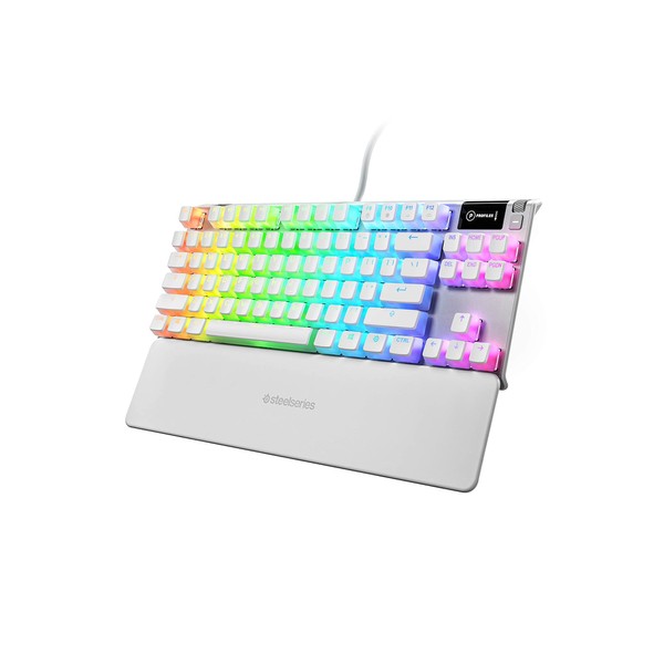 SteelSeries Apex 7 TKL Compact Mechanical Gaming Keyboard – OLED Smart Display – USB Passthrough and Media Controls – Linear and Quiet – RGB Backlit (Red Switch) - Ghost (Renewed)
