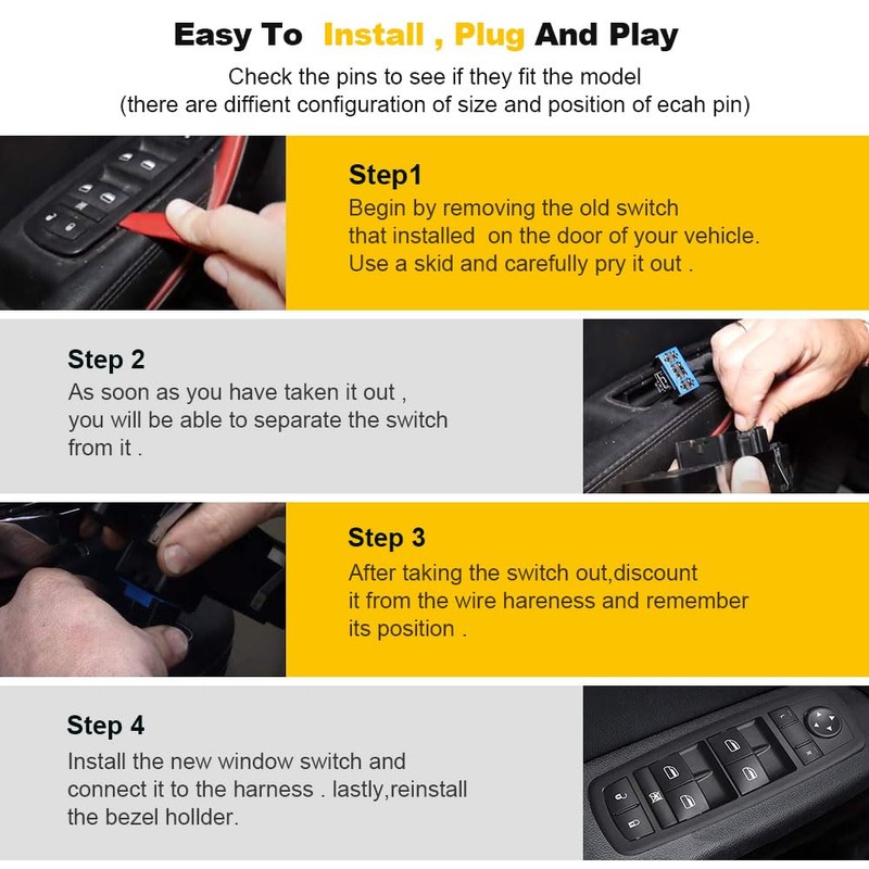 • Quality and reliability: Crafted from premium abs materials, our Car Lift Switch is built to withstand rigorous lifting operations. Its robust construction ensures long-lasting performance, giving you peace of mind and a reliable tool in your garage. which is tougher than the original switch and suitable for long time use. Compared to physical shops, this electric window switch is very cheap.