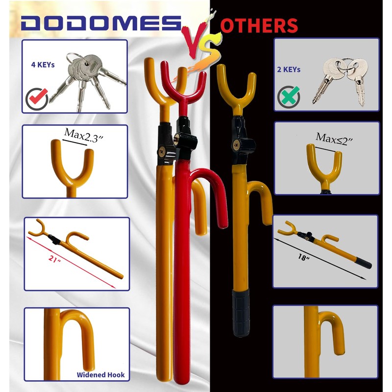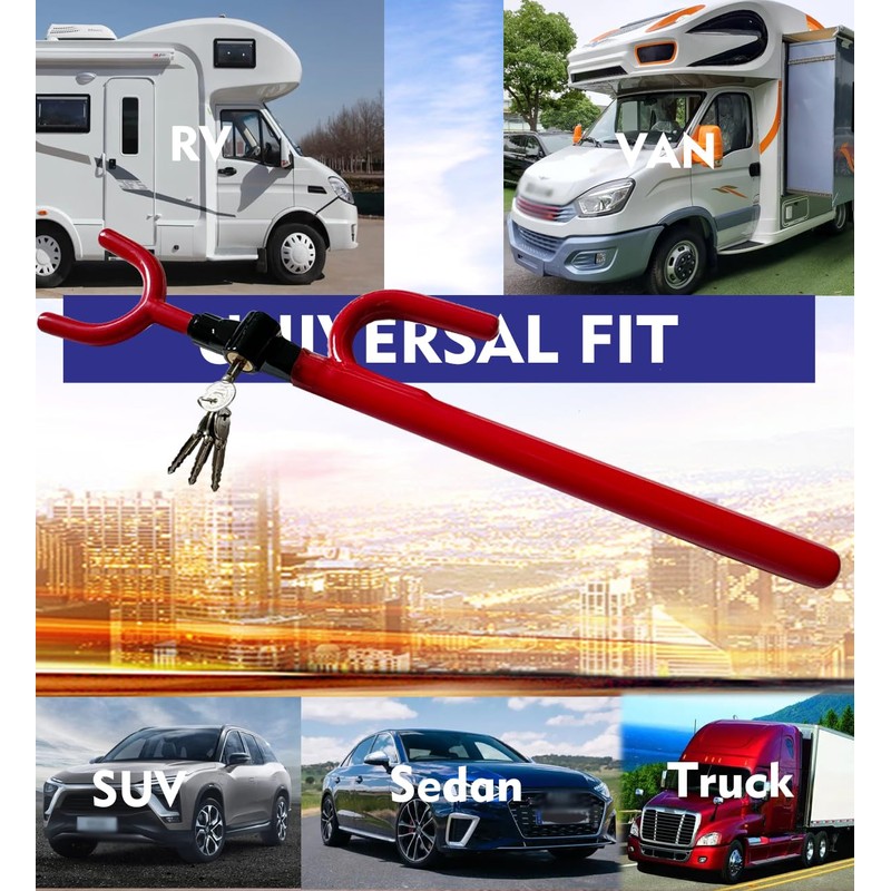 - UNIVERSAL FIT : The car steering wheel lock fit for most vehicles, including cars,trucks, vans, golf cart and SUVs. The twin hook design allows the lock to hook more tightly onto the steering wheel.