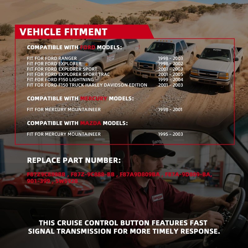 Steering Wheel Mounted Cruise Control Switch Buttons Kit Replacement Fit for Ford Ranger 1998-2003 Ford Explorer Sport Trac F150 Mercury Mountaineer B3000 F87Z-9C888-BB F87A-9D809-BA