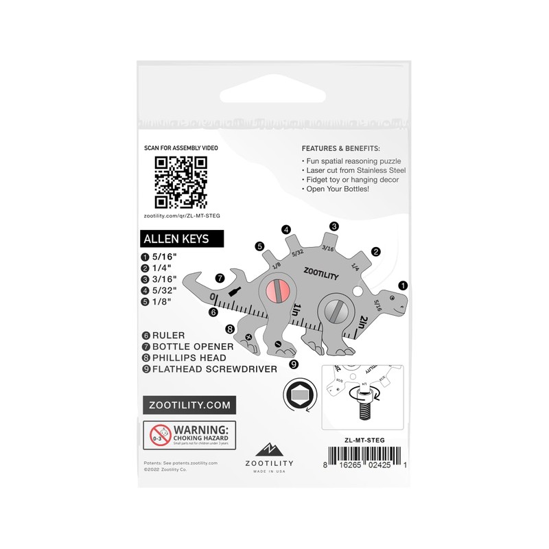 StegKEYsaurus - Metal TekPet | Zootility | Multi-tool | Metal Puzzle | Fidget Toy| Stainless Steel, Made in USA