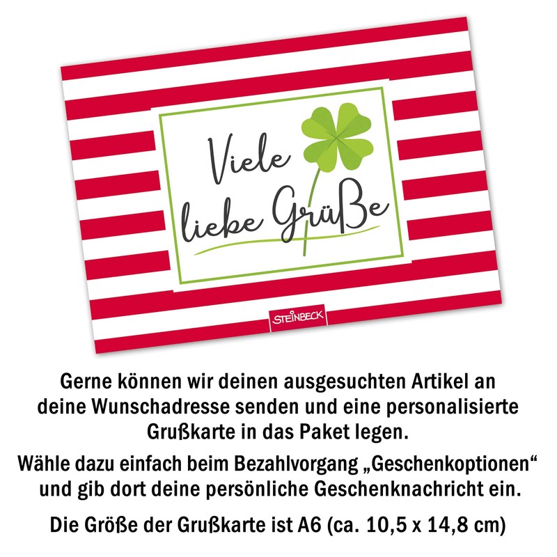 - Schau auch nach den anderen Motiven in unseren Steinbeck-Store auf amazon.de/steinbeck! Die vielen Botschaften passen zu verschiedenen Anlässen, die Versandkosten bleiben immer gleich, da kann man gut gleich zwei Artikel shoppen und hat für den nächsten Anlass schon eine passendes süße Geschenkidee zu Hause.